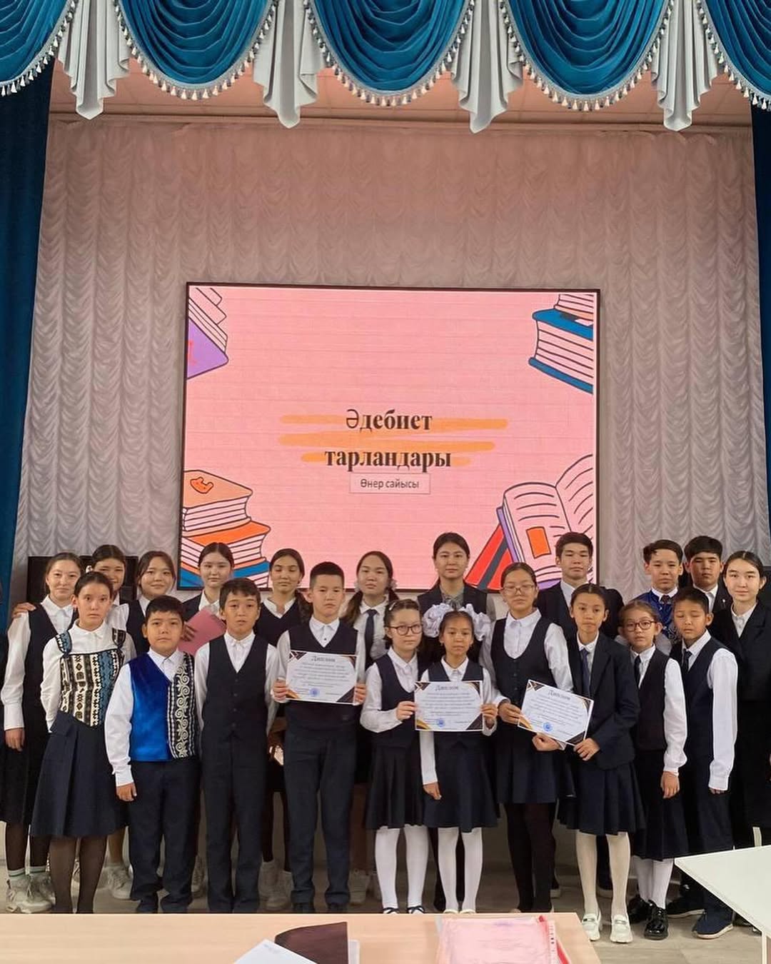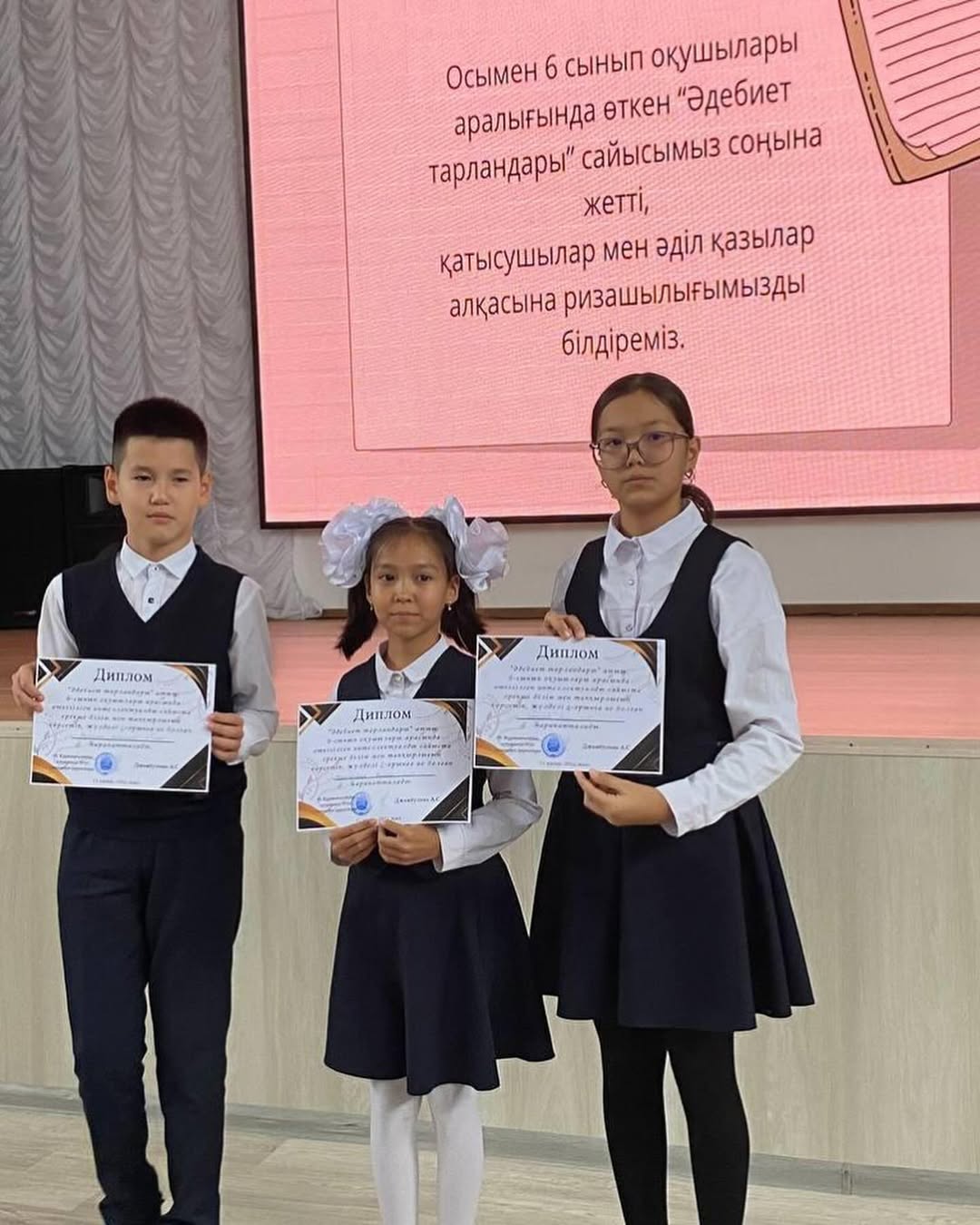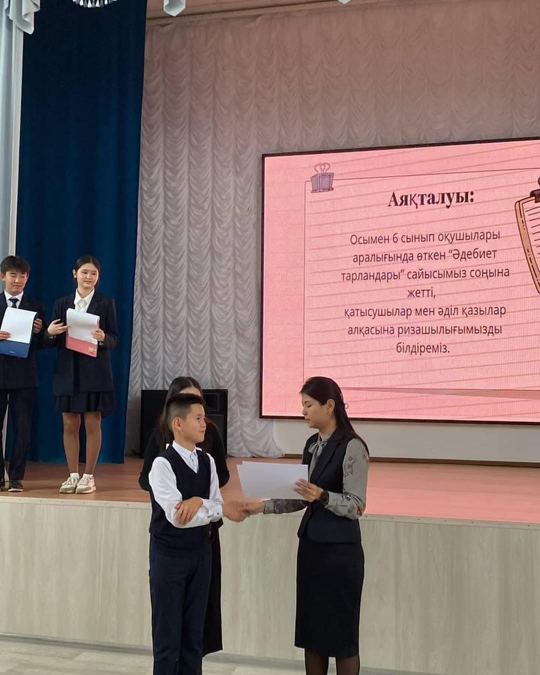 Гимназиямызда Біртұтас тәрбие бағдарламасының “Ұшқыр ой-алаңы” жобасы аясында «Жас талап» ұйымының ұйымдастыруымен өткен 6-сыныптар арасында «Әдебиет тарландары» интеллектуальды сайысы өткен болатын. Мақсаты – оқушы бойынан ой ұшқырлығы мен білімпаздықты қатар байқап, әдебиет пәнінен үздік оқушыларды анықтау.
