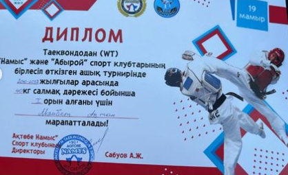 Теквондодан (WT) “Намыс” және “Абырой” спорт клубтарының бірлесіп өткізген ашық турнирінде 2010-2012 жылғылар арасында 40 кг салмақ дәрежесі бойынша 1 орын алғаны үшін Мәмбет Ақжан марапатталады.